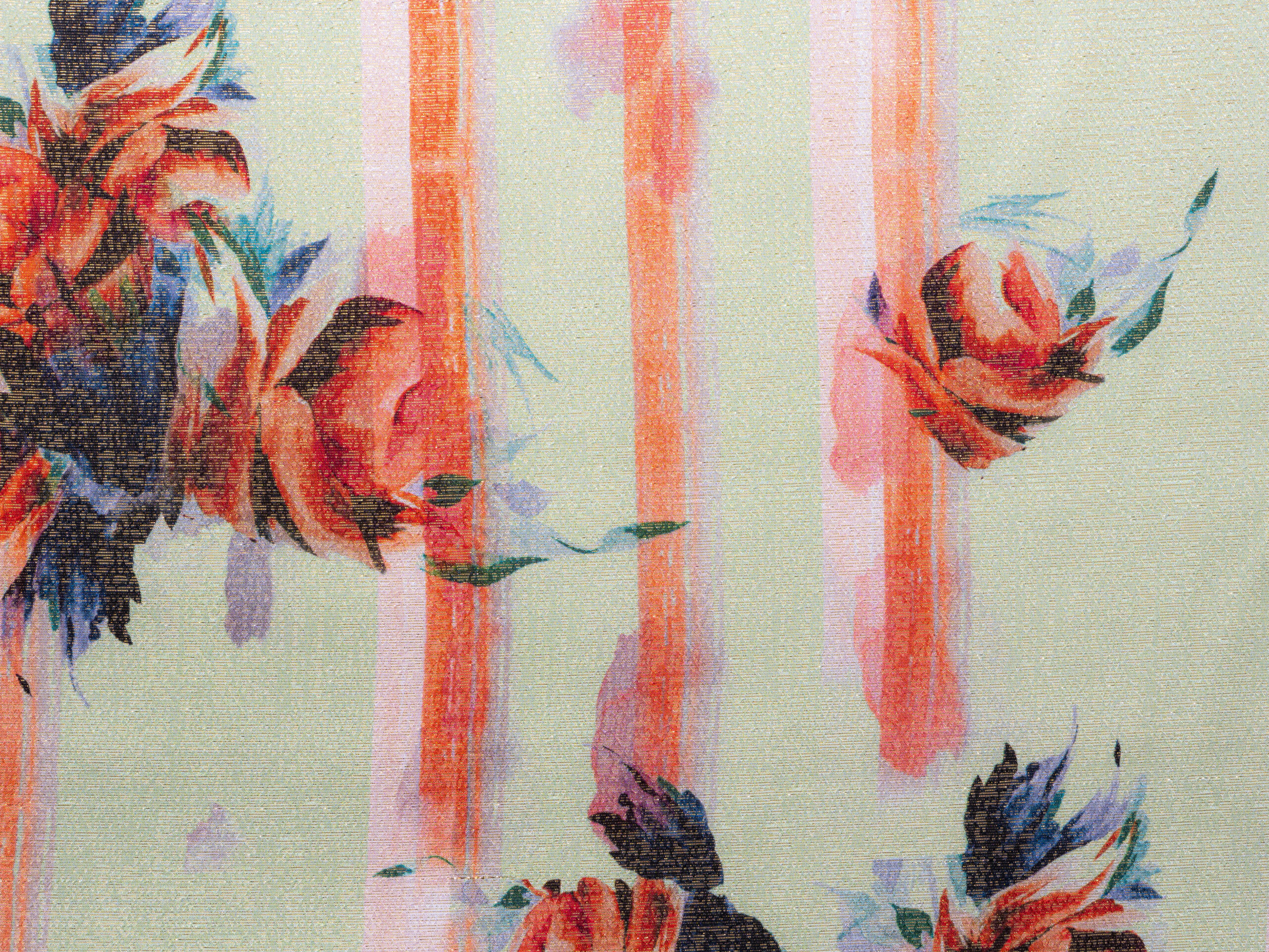Rose Large Green Pink Lurex Italian Silk Chiffon