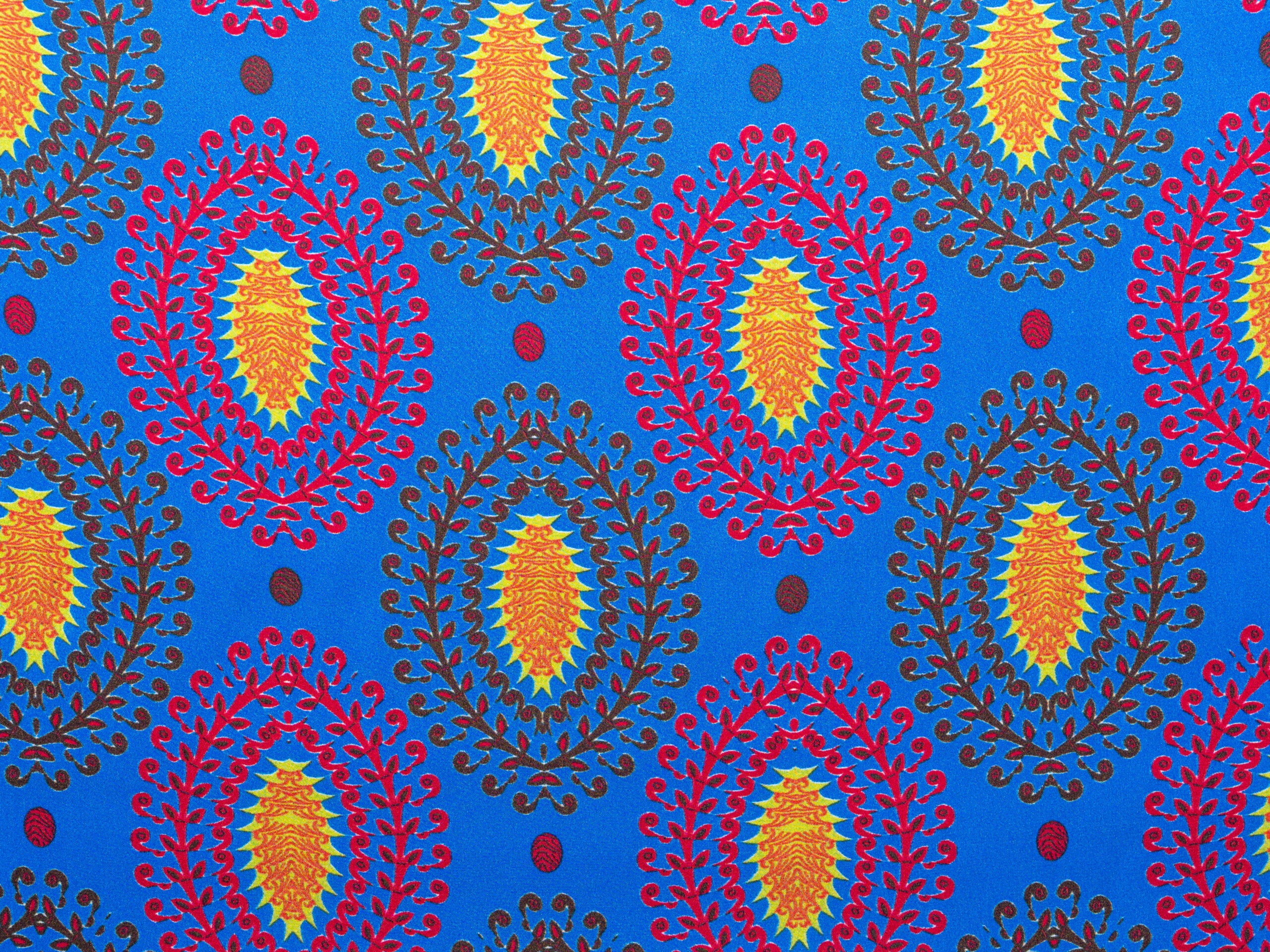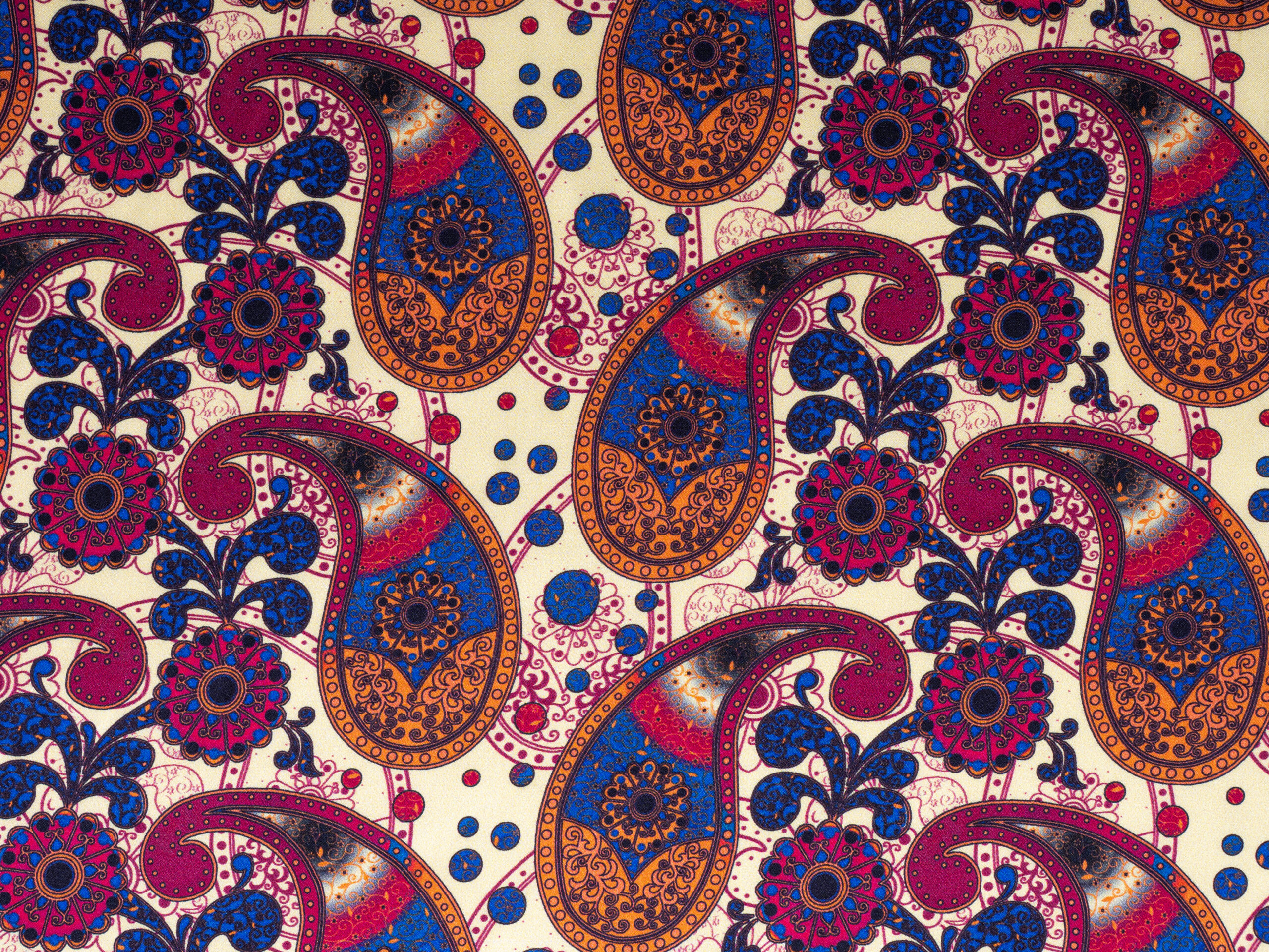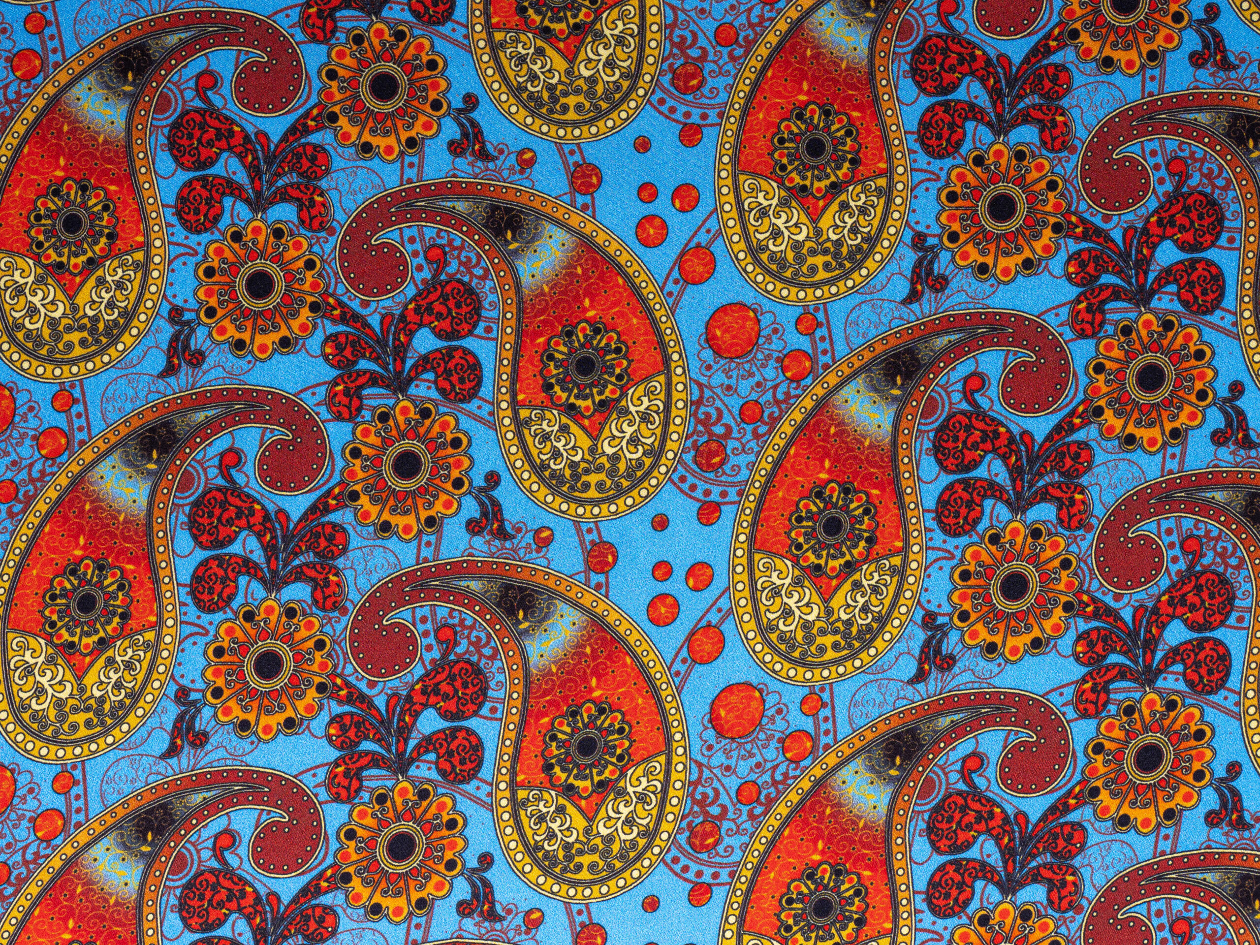 Palm Paisley Red Blue Italian Silk Satin