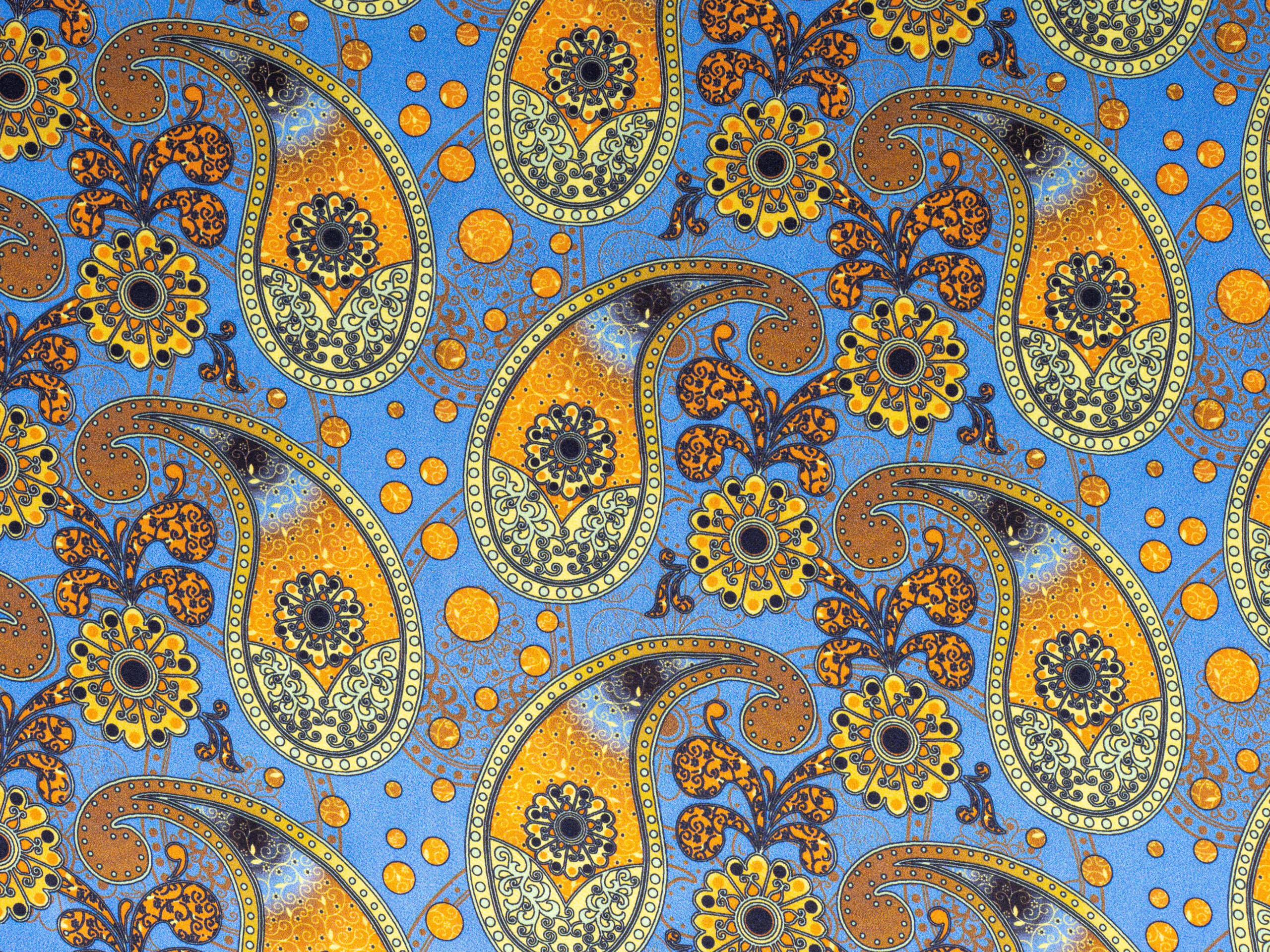 Palm Paisley Yellow Blue Italian Silk Satin