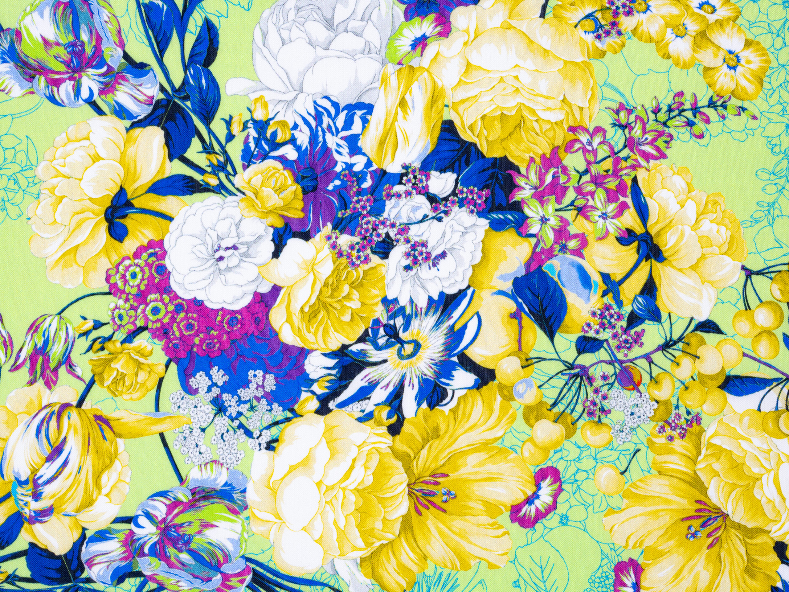 Passion Flower Green Yellow Italian Silk Satin