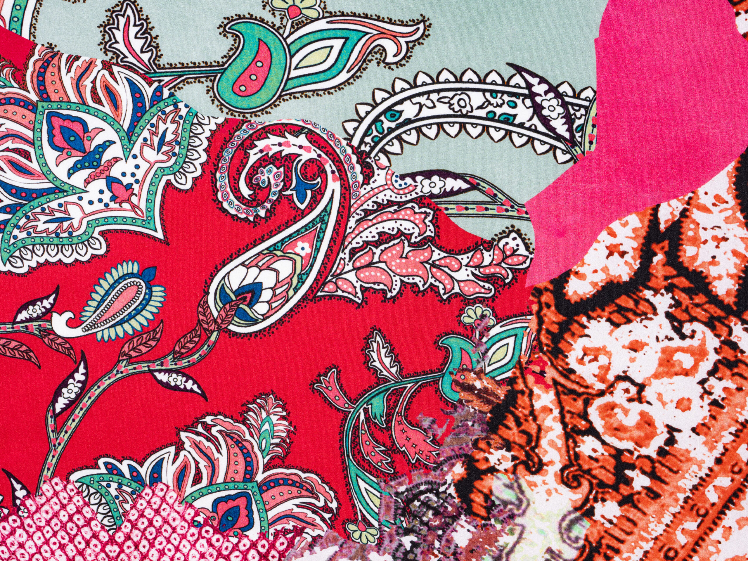 Patchwork Paisley Red Pink Italian Silk Satin