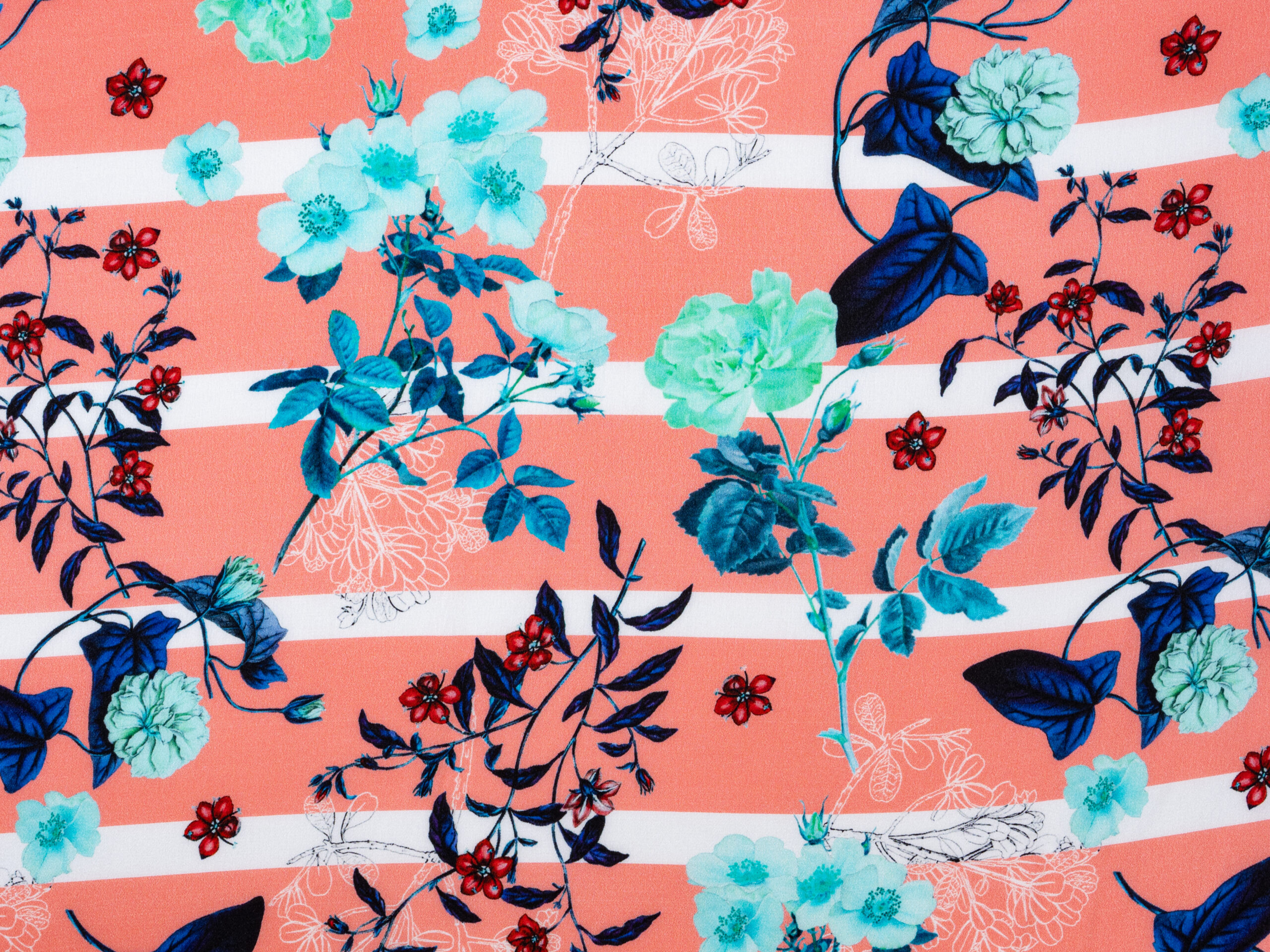 Gated Flora Blue Peach Italian Silk Satin