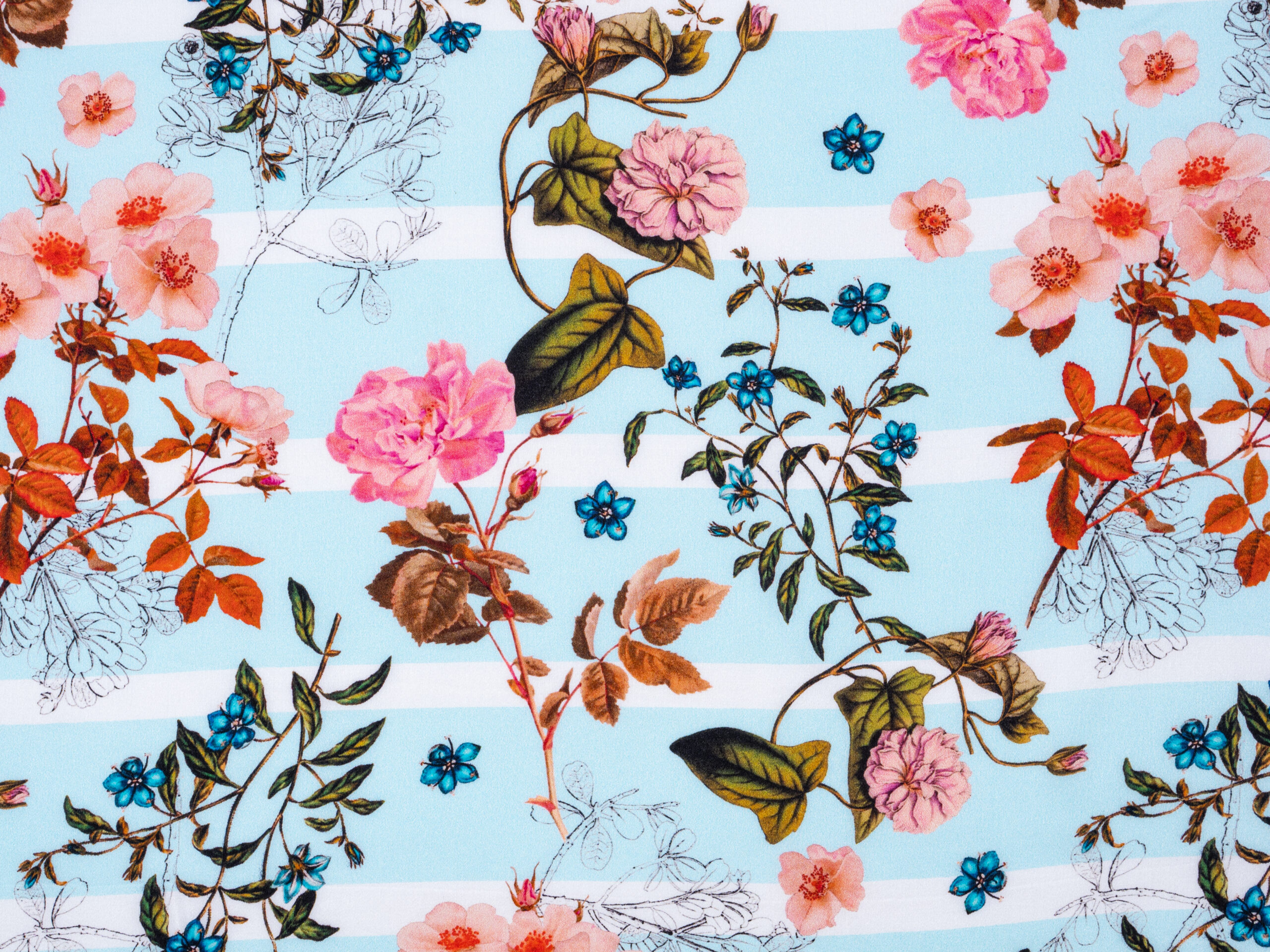 Gated Flora Pink Blue Italian Silk Satin